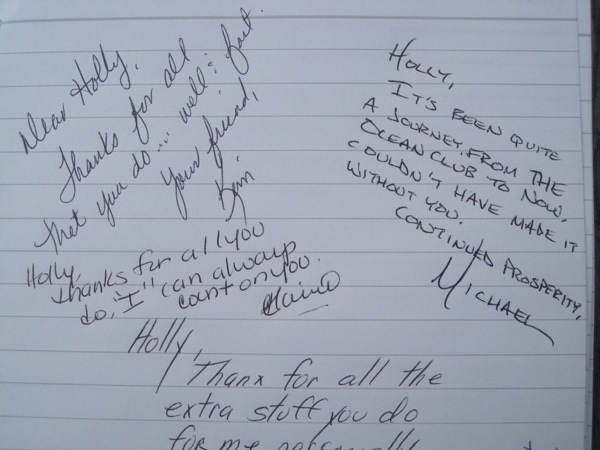 I’ve received and given my share of client/vendor gifts. But none touched me in the way that this gift from longtime client Matrix2 Advertising did. They’re a Miami-based marketing agency (and a darn good one), and out of the blue, they sent me a personalized spiral-bound notebook with my name on the cover and in the corner of every page. Also on the cover is the quote: ‘Life isn’t about how to survive the storm, but about how to dance in the rain.” It’s a lovely sentiment, but what really surprised and moved me was that on the first page, every member of the staff had taken the time to thank me personally. It was genius, really. They did so many things right. First, it wasn’t the obligatory holiday gift, lost amidst the other corporate gifts. Second, the personalization is always a winner. Who doesn’t love their name on stuff? Bonus points for the spiral-bound notebook—I confess to being a junkie for notebooks of all shapes and sizes. And the hand-written notes just sealed the deal. Feel free to steal this idea and adapt it to your clients. I know I will.